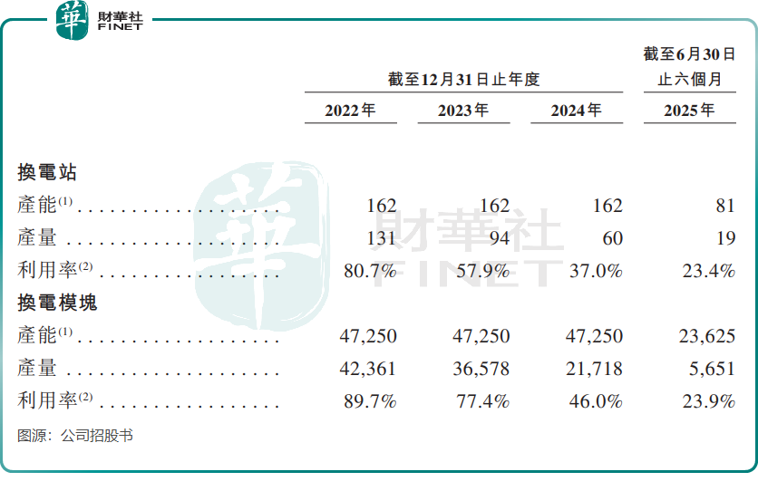 這一變化導致奧動新能源的產能利用率大幅下滑,換電站生產利用率從2022年的80.7%驟降至2025年上半年的23.4%,換電模塊利用率也從89.7%跌至23.9%。產能閑置推高了公司單位成本的同時,設備銷售收入也連續三年萎縮,到2025年上半年僅佔總營收的17.1%。