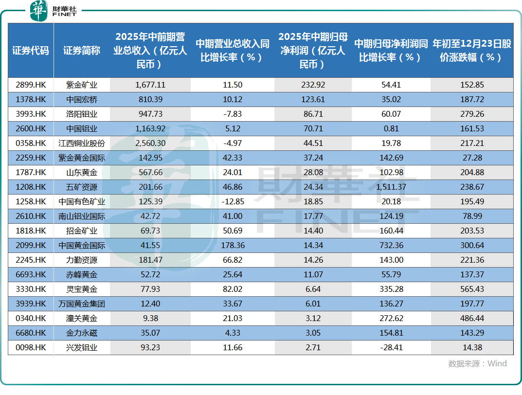 個股方面,銅、金雙料龍頭的紫金礦業(02899.HK)在年內漲近159%,目前市值已經達到了9354億港元,洛陽鉬業(03993.HK)則在年內飙升近285%。