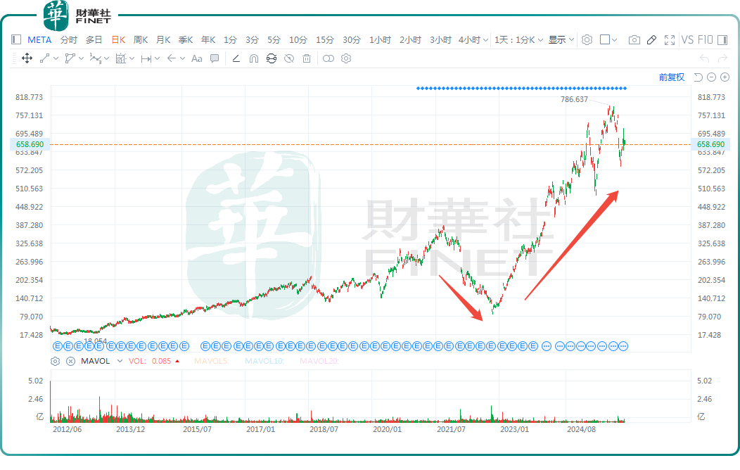 從目前在AI時代取得的成績來看,Meta的股價早已爬出了押注元宇宙帶來的深坑,併在近年持續飙漲,頻創新高,整體表現併不差。