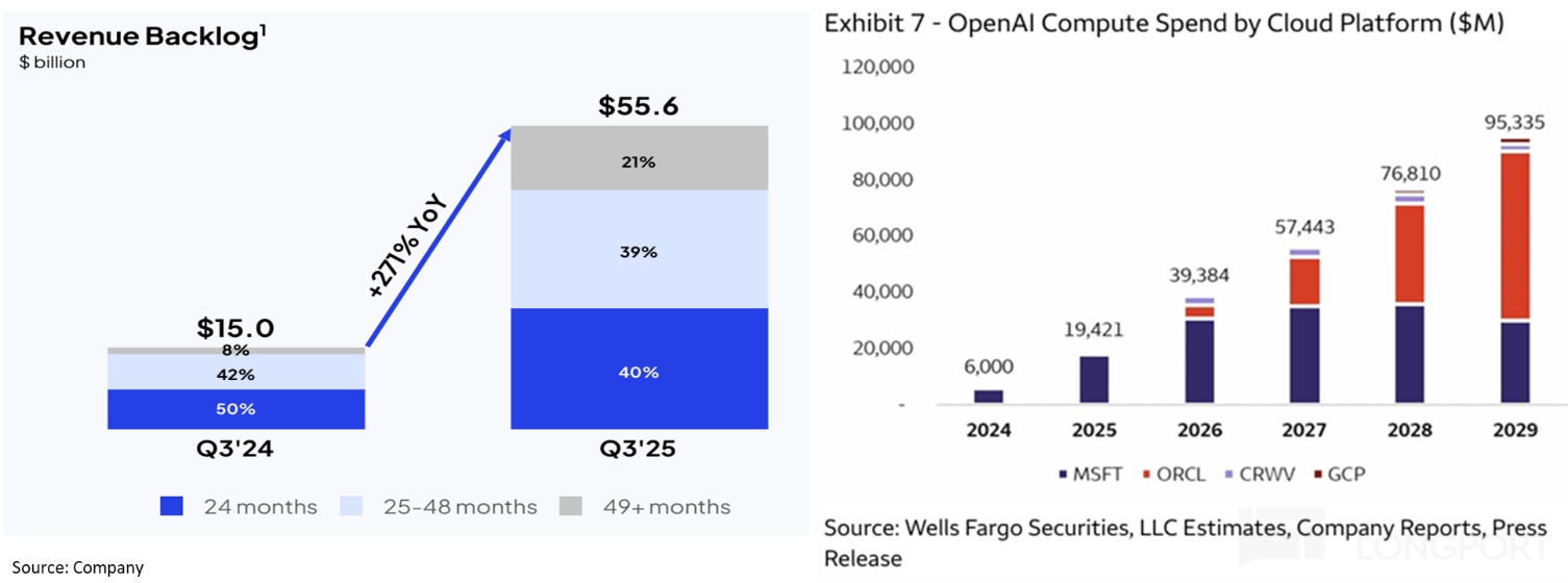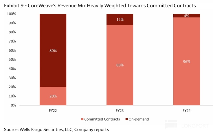 對應着公司高度依賴少數大客戶的長期風險,短期視角反而是 CoreWeave 很強的確定性。