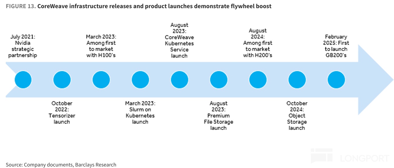而 21 年英偉達和公司簽訂戰略合作協議後,後續H100,H200,GB200 等上線時,CoreWeave 一直是首批能夠獲得當時最高端芯片的公司(之一)。