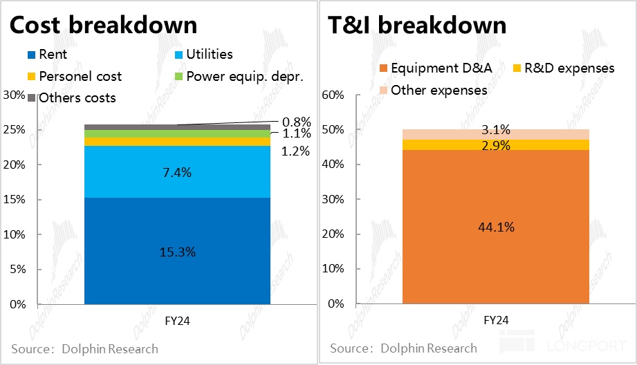 b. 佔比第二、第三高的則是數據中心的租金,佔收入約 15%(因數據中心近乎全是外租,基本沒有建築折舊)和能源費用,佔收入約 7%(包括電力和帶寬等,以及能源設備折舊)。
