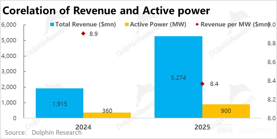 供給上,按近 2 年的情況,每 1 Mw 的上線算力對應產生約$850 萬的年收入,那麼200 億收入對應的上線算力約爲 2.4GW,小於公司目前已儲備的約 2.9GW 能源供應,也不會存在能源瓶頸。
