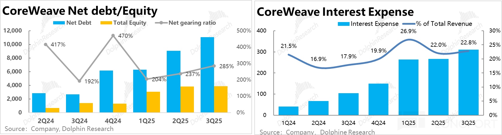 CoreWeave 對負債的依賴可以從 3 個角度看: