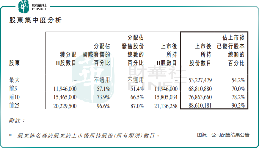 值得注意的是,股權結構顯示,公司前25名股東合計持有上市後已發行股份的90.2%,股權集中度較高。