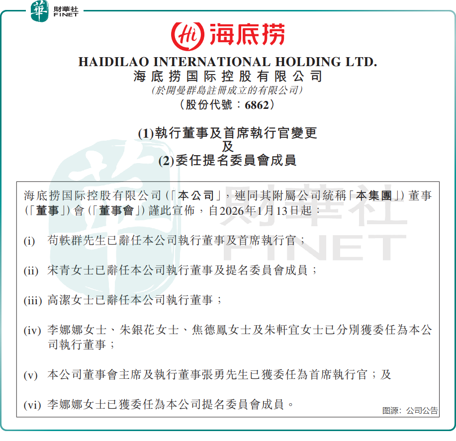 資料顯示,這四位新董事均是內部成長起來的「海底撈自己人」,年齡集中在35至44歲,覆蓋區域運營、產品供應鏈、集團戰略等核心業務,擁有紮實的一線管理經驗。她們的加入,讓海底撈董事會在性別結構與年齡層次上更為多元化。海底撈在公告中也表示,此項任命意在「支持公司持續創新及長期發展,積極磨礪並培養年輕一代管理團隊」。