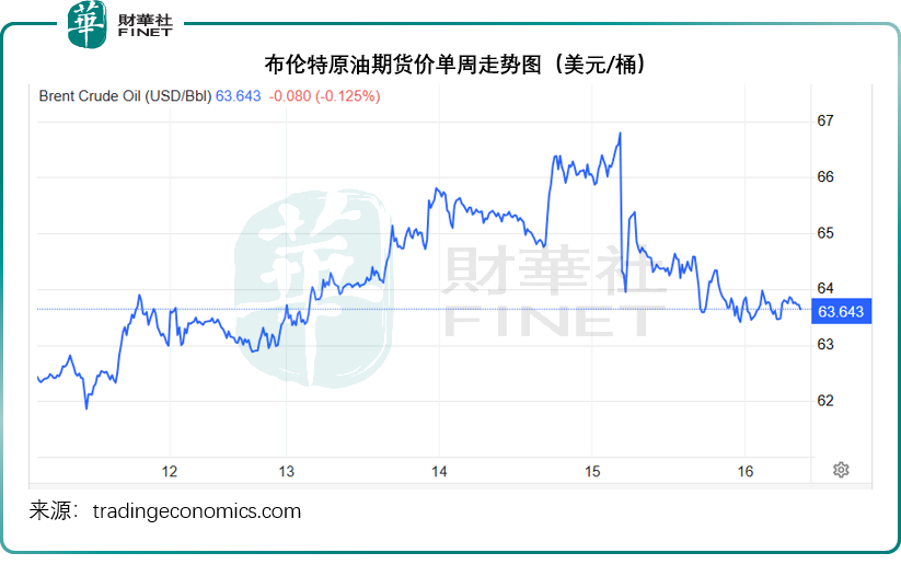 在美元走強,地緣局勢似有緩和跡象的共同推動下,油價回落,見下圖,布倫特原油期貨價從1月15日早段的66.84美元跌至如今約63.63美元,跌幅超4.8%。金價也從4,630美元以上回落至4,600美元以下。