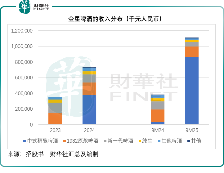 財務數據印證了這一戰略的成功。招股書顯示,2025年前三季度,中式精釀啤酒貢獻了金星啤酒78.10%的收入,對應營收約8.67億元,這一規模已遠超2024年金星啤酒公司全年7.3億元的營收總額,而2024年同期中式精釀的收入佔比僅為9.35%,對應營收約3,563.6萬元。