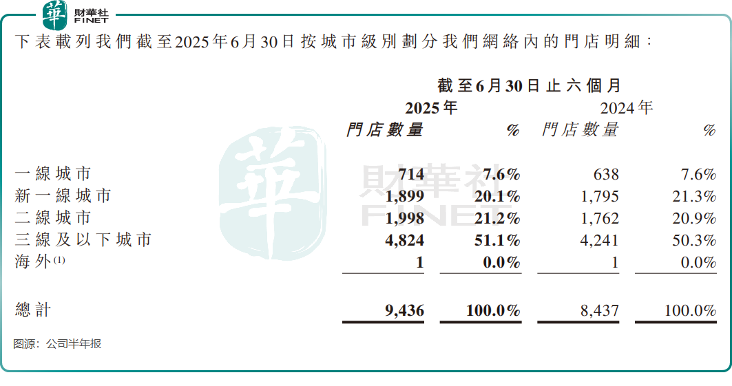 作為該賽道的領先企業之一,滬上阿姨將三線及以下城市視為重要的增長引擎,通過密集的門店網絡與本地化的產品創新,加速搶占市場份額。根據其2025年半年報,公司在三線及以下城市的門店數量已達4824家,占總門店數的比例進一步提升至51.1%。