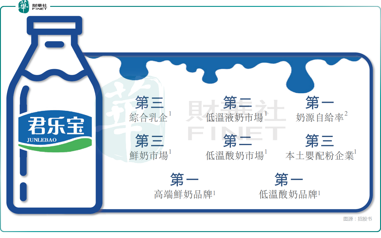 根據弗若斯特沙利文報告,以2024年中國市場零售額計,「君樂寶」品牌已成為中國最具知名度的乳制品品牌之一,公司位列綜合性乳制品公司第三,市場份額為4.3%。