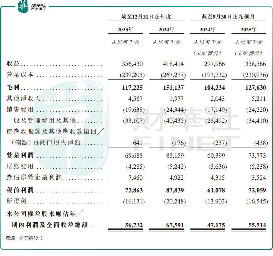 招股書數據顯示,蓮池醫院的業績保持著穩步增長的態勢。2023年至2024年,公司收入從3.56億元(單位人民幣,下同)增至4.18億元,淨利潤從5673.2萬元增至6759.1萬元;2025年前三季度,收入進一步增至3.59億元,淨利潤亦進一步提升至5551.4萬元。