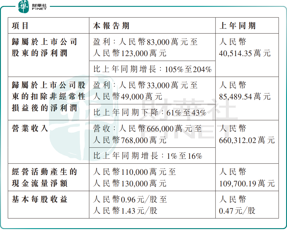 現金流方面,報告期內,經營活動現金流量淨額預計達11億元-13億元,而上年同期為10.97億元。