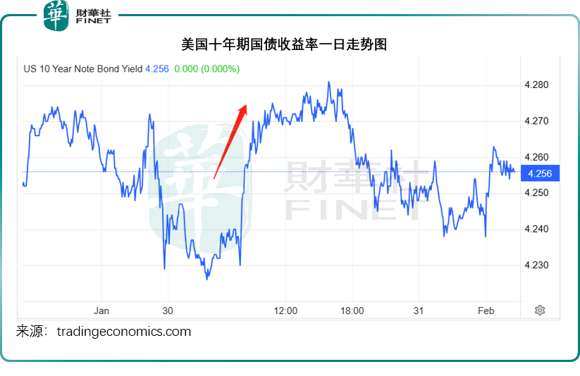 這一提名雖尚待參議院批准,但市場已迅速作出反應--美元指數強勢上揚,從96.1左右飆至97.2左右;美債收益率攀升,美國十年期國債收益率一度上漲5個基點,至4.27%以上水平,一度突破4.28%,見下圖。