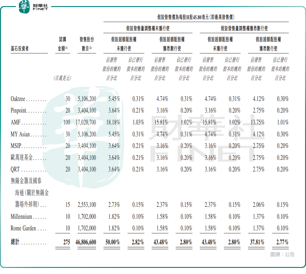 值得注意的是,先導智能此次發行獲得多方青睞,基石陣容強大,引入了Oaktree、歐萬達基金、無錫金籌及國泰海通等機構,基石投資者合計擬認購總額約2.75億美元的發售股份。