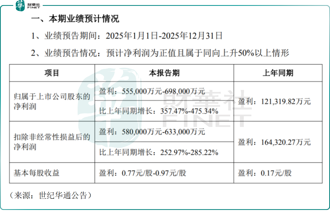 據世紀華通(002602.SZ)披露的業績預告顯示,預計2025年公司合併營業收入約380億元(人民幣,下同),同比增長68%;預計歸母淨利潤為55.5億元至69.8億元,同比大幅增長約357.47%至475.34%。