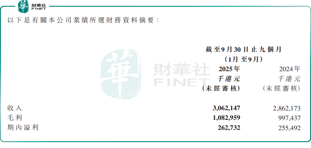 據截至2025年9月30日止9個月的財務數據顯示,日清食品實現總收入30.62億港元,同比增長6.99%:淨利潤2.63億港元,同比增長2.83%。