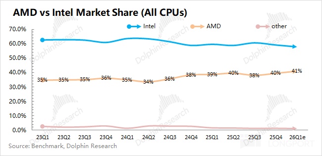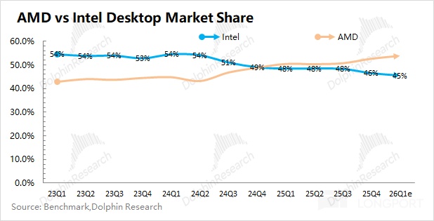 b)CPU 競爭力提升:AMD 持續在侵蝕英特爾在 CPU 領域的份額。