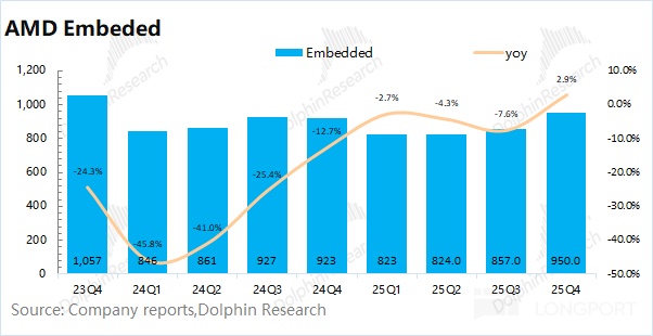 2)嵌入式業務:公司的嵌入式業務在 2025 年第四季度實現收入 9.5 億美元,同比增長 3%,其中多個終端市場需求的回暖提供了支撐。