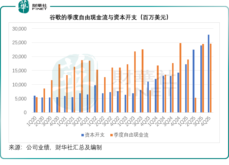 市值超四萬億美元的谷歌(GOOG.US)於2025年第4季實現了創紀錄的營收,雲業務利潤率加速擴張,經營現金流和自由現金流大幅增長。