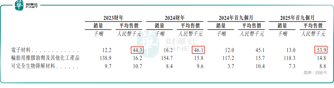 更關鍵的是,從產品近年的價格和銷量來看,電子材料的平均售價持續增長,2023財年至2025年前三季度從44.3千元/噸升至53.9千元/噸,銷量也穩步提升,實現「量價齊升」,這是一個很好的信號。
