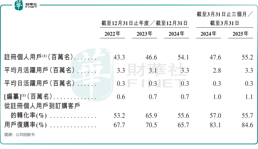 截至2025年6月30日,其平台註冊個人用戶數為5690萬,相較於2024年末的5410萬雖然有所增加,但其平均月活躍用戶數量為330萬,2022年以來基本處於該水平,增長乏力已成定局。