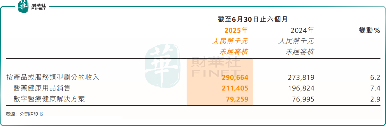 與「賣藥」業務形成鮮明對比的是,數字醫療健康解決方案業務雖毛利率高達77.4%,但收入貢獻占比僅為27.3%,且增長乏力。2025年上半年,該業務收入同比僅增長2.9%,遠低於醫藥健康用品銷售7.4%的增速。