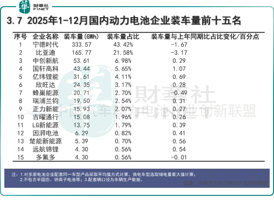 在寡頭壟斷的市場格局下,中創新航的突圍顯得尤為亮眼。中國汽車動力電池產業創新聯盟數據顯示,2025年國內動力電池市場中,中創新航全年市占率同比提升0.29個百分點至6.98%,而寧德時代(300750.SZ)(03750.HK)、比亞迪(002594.SZ)(01211.HK)的市佔率分別同比下降1.67和3.17個百分點。