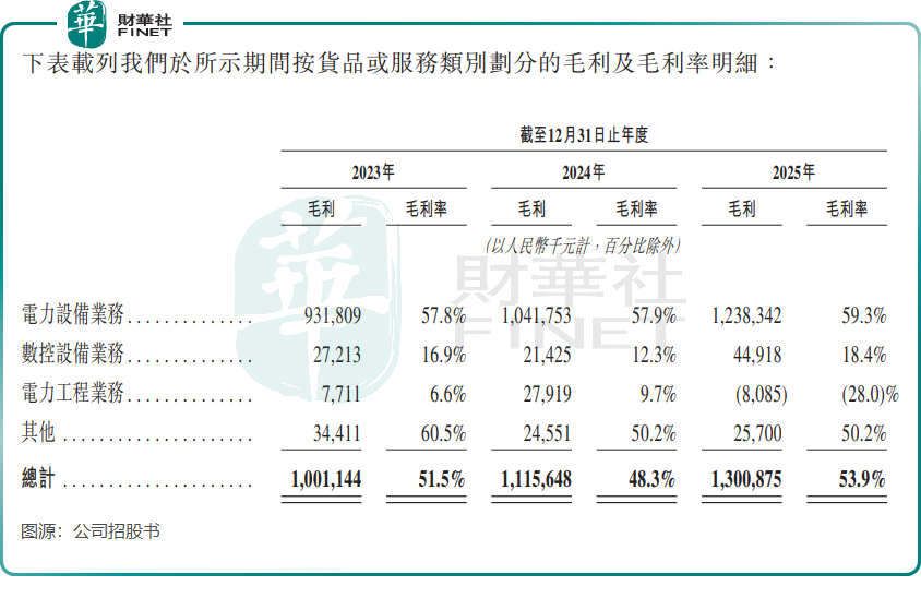 2025年,公司淨利潤為7.2億元,毛利率和淨利率則分別高達53.9%及29.8%。而根據Wind數據,A股市場的電力設備行業2025年的毛利率均值僅有13.11%,其中寧德時代(300750.SZ)(03750.HK)和大金重工(002487.SZ)毛利率在30%左右,遠不及華明裝備同期的毛利率。