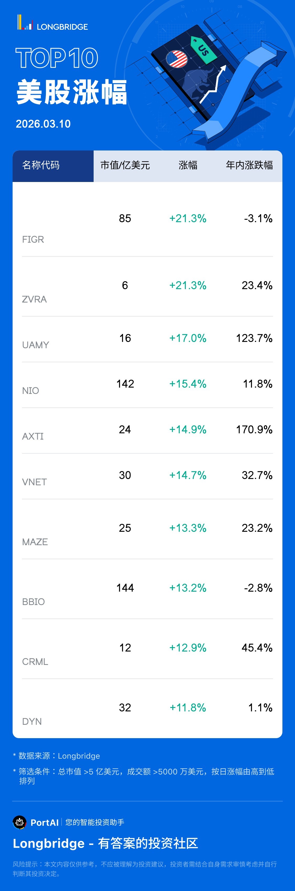 Figure Tech Solutions - CL(FIGR) 漲 21.29%,成交額 11.0 億美元,年內累計跌 3.1%。