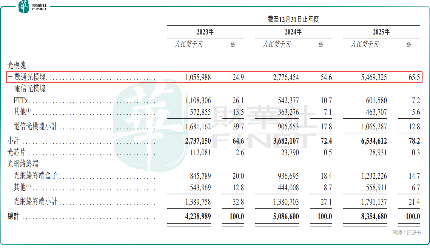 此外,在細分賽道中,公司的實力同樣突出:全球數通光模塊市場份額3.5%(第五)、全球FTTx光模塊市場份額5.0%(第三)、中國光網絡終端盒子市場份額4.1%(第三)。