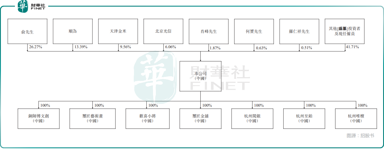 資本層面,銅師傅早已獲得明星資本青睞。招股書顯示,其股東名單中不乏順為資本、小米系的天津金米投資、北京光信股權投資基金等知名機構。截至2026年3月6日,創始人俞光直接持有26.27%股份,為公司單一最大股東,順為資本持股13.39%,天津金米投資持股9.56%,此外小米聯合創始人黎萬強也是其股東。