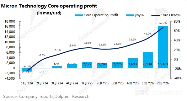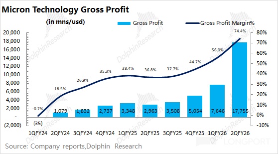 美光公司 2026 財年第二季度實現毛利 178 億美元,其中公司本季度毛利率爲 74.4%,環比提升 18.4pct。毛利率的提升,主要是由傳統存儲產品價格上漲的帶動。