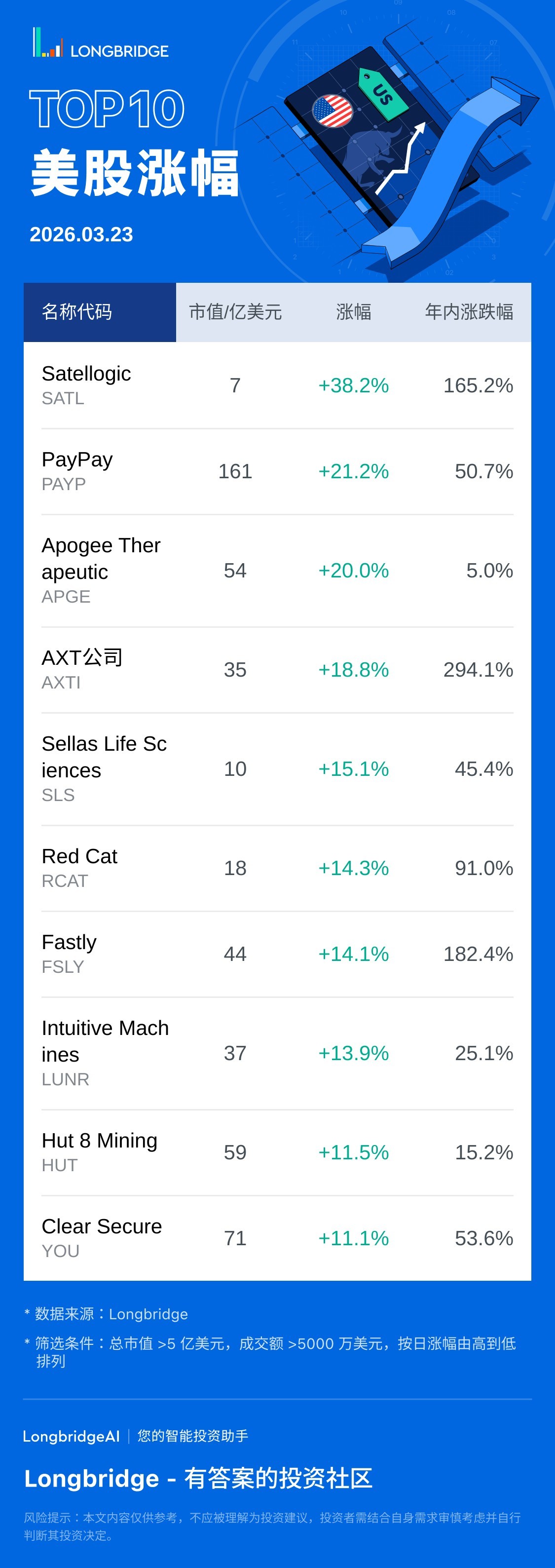 Satellogic(SATL) 漲 38.16%,成交額 1.1 億美元,年內累計漲 165.2%。