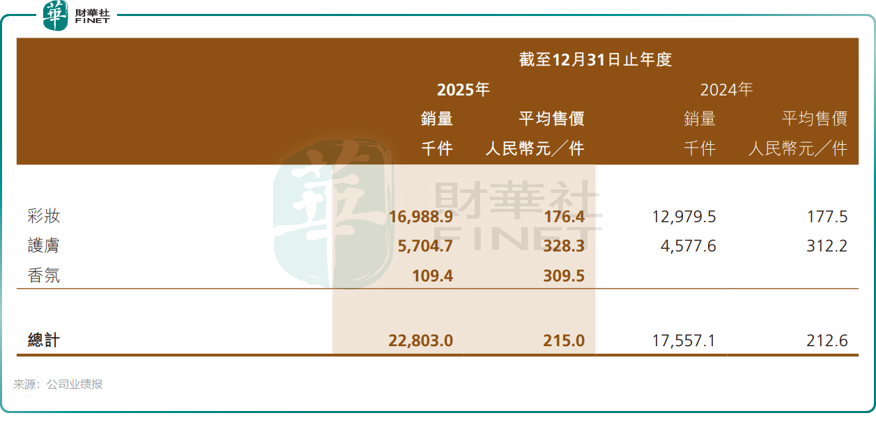 在產品種類方面,毛戈平不斷豐富和拓展產品矩陣,截至2025年12月底,其產品組合涵蓋彩妝、護膚、香氛三個類別的469個單品,較上年同期有所增長。