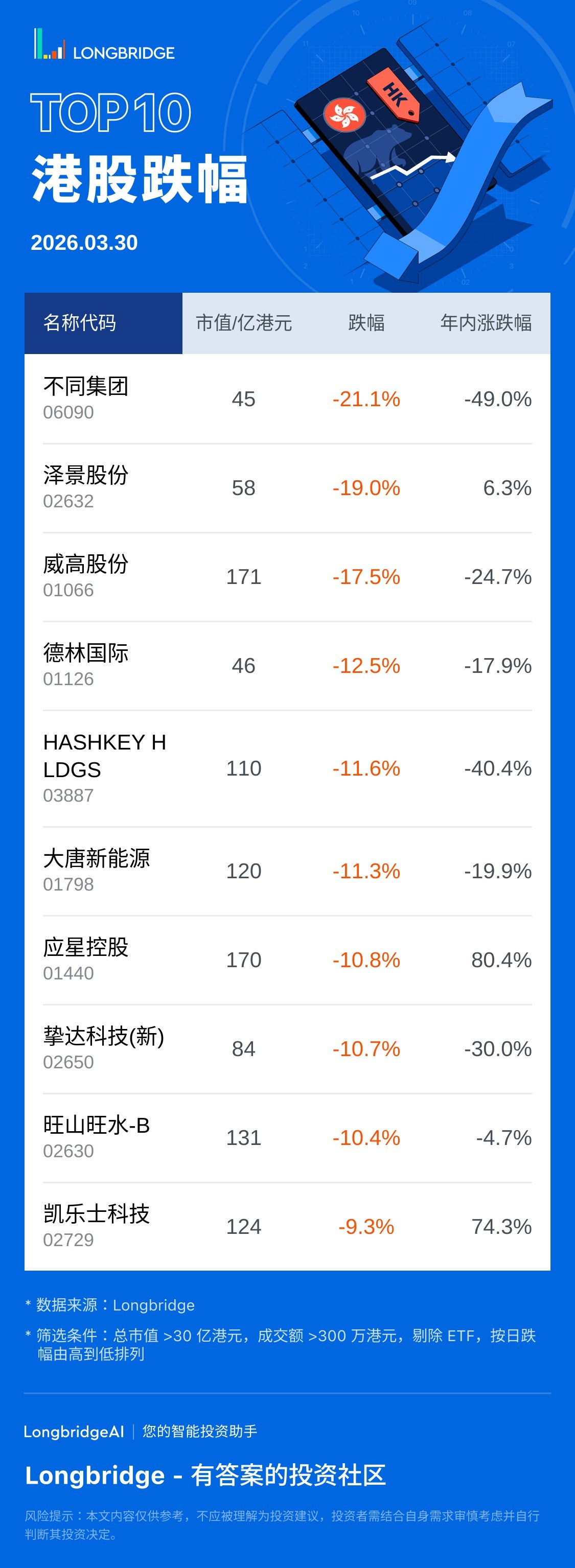 不同集團 (06090) 跌 21.1%,成交額 4355.9 萬港元,年內累計跌 49%。