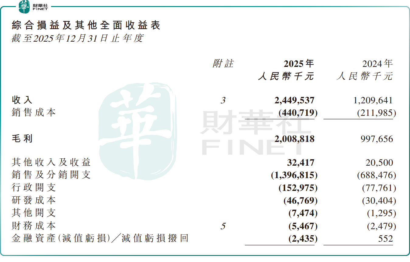 從業績表現來看,林清軒2025年交出了一份靚麗的成績單:公司錄得收入24.5億元(單位人民幣,下同),同比增長102.50%;歸母淨利潤3.6億元,同比增長92.9%。