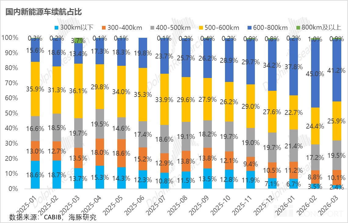 一季度國內600km續航以上的車型佔比已達到40%-50%,大幅遠高於去年一季度10%-20%的水平。這主要得益於: