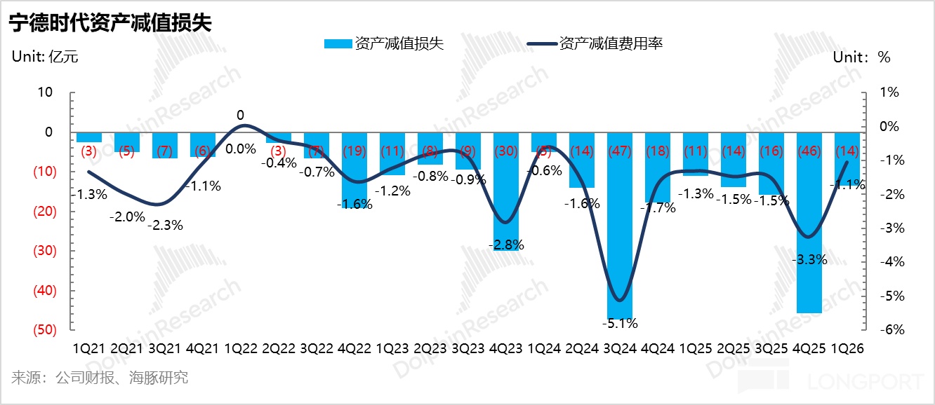 ⑤ 淨利潤擊穿預期,減值壓力出清釋放利潤: 歸母淨利 207 億元(同比+49%),單 Wh 淨利依然穩守 0.1 元。隨着前期“減值包袱”的出清(環比大幅縮減 32 億)以及核心運營利潤率(15.9%)的穩健表現,公司不僅在“量”上領先,在“質”上也徹底擊碎了市場關於原材料漲價侵蝕利潤的擔憂。