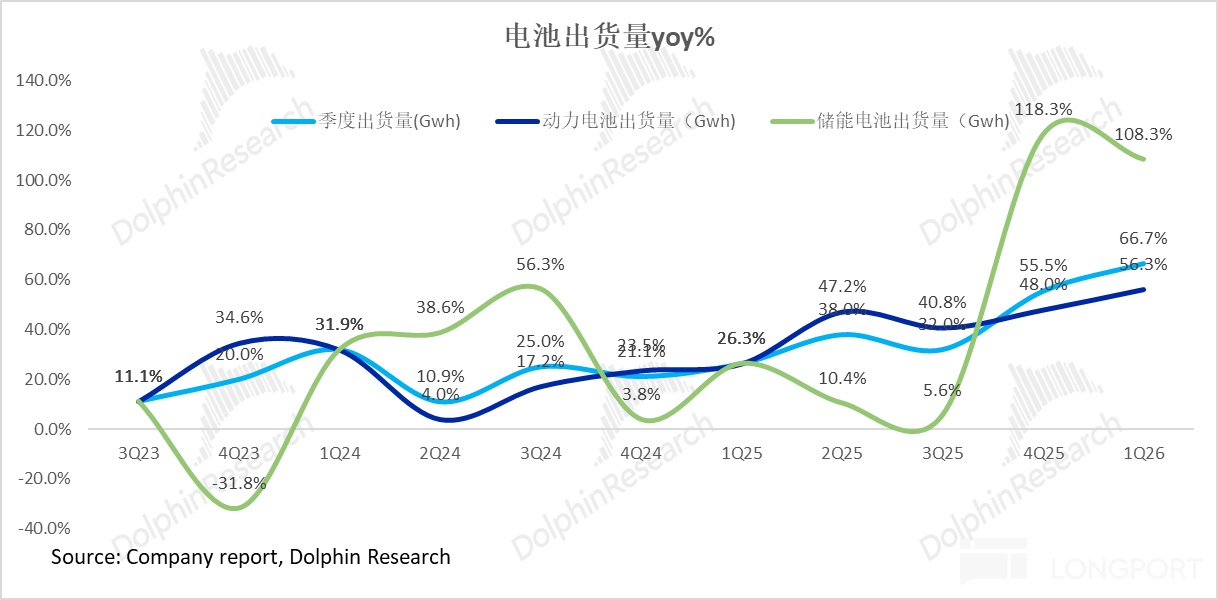 產能釋放支撐交付:公司用於緩解儲能產能壓力的山東濟寧基地(規劃新增產能超100GWh)在2026年開始逐步釋放產能,有力支撐了出貨量的高增長。