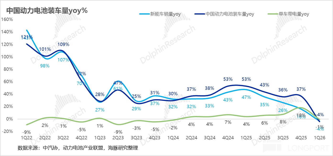 動力電池領跑行業,帶電量“槓桿效應”爆發: 動力電池出貨約 150GWh(同比+56%),遠超國內新能源車銷量增速(-4%)。這背後的核心邏輯在於“行業 Beta 升級”:乘用車標配長續航以及高帶電量商用車滲透率躍升帶來的 1:4 需求槓桿效應已全面兌現。