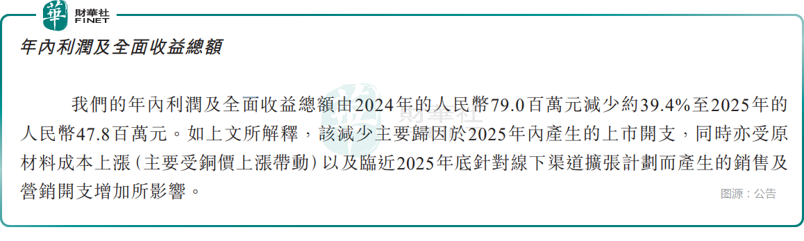 錢去哪兒了?公告給出了關鍵去向:1、2025年,銅師傅計入損益的上市開支約2020萬元。如果剔除這部分影響,其利潤仍然遭遇下滑,但幅度看起來就好多了。