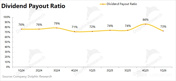 b)分紅情況:公司本季度分紅 197 億元,由於之前主要是在二三季度進行分紅。假定公司在二季度分紅 280 億元,那麼公司當前的股息支付率仍將維持在 73% 左右。