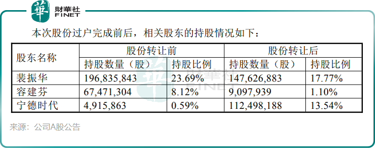 兩家公司的淵源可以追溯到2015年。彼時,天華新能創始人裴振華通過旗下寧波聯創收購了寧德時代15%的股權。2018年,雙方共同成立天宜鋰業;2025年11月,寧德時代再度加碼,以26.35億元完成受讓裴振華夫婦所持12.95%股份,累計持股達13.54%,躍升為天華新能第二大股東。