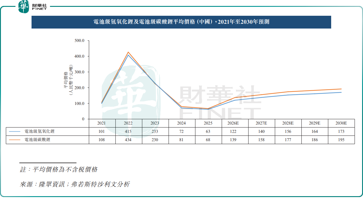 據弗若斯特沙利文預測,電池級鋰化合物價格已於2025年下半年觸底回升,自2026年起有望進入上行周期。2026年1月,電池級碳酸鋰價格一度衝高至18.22萬元/噸。摩根士丹利和瑞銀分別預測2026年全球鋰市場將出現8萬及2.2萬噸的供給缺口。