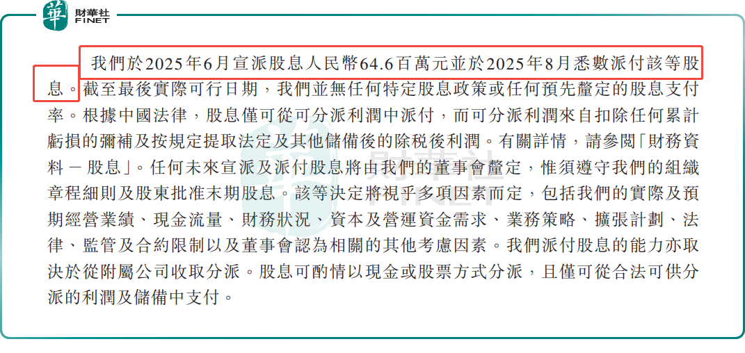 值得留意的是,伊卡路斯於遞表前夕存在突擊分紅行為。根據招股書披露,公司在2025年6 月宣派股息6460萬元,相當於2025全年淨利潤的96.5%,近乎將年度盈利全額分派。此番高比例突擊分紅,引發市場對上市募資必要性、持續經營能力及分紅合理性的關注。