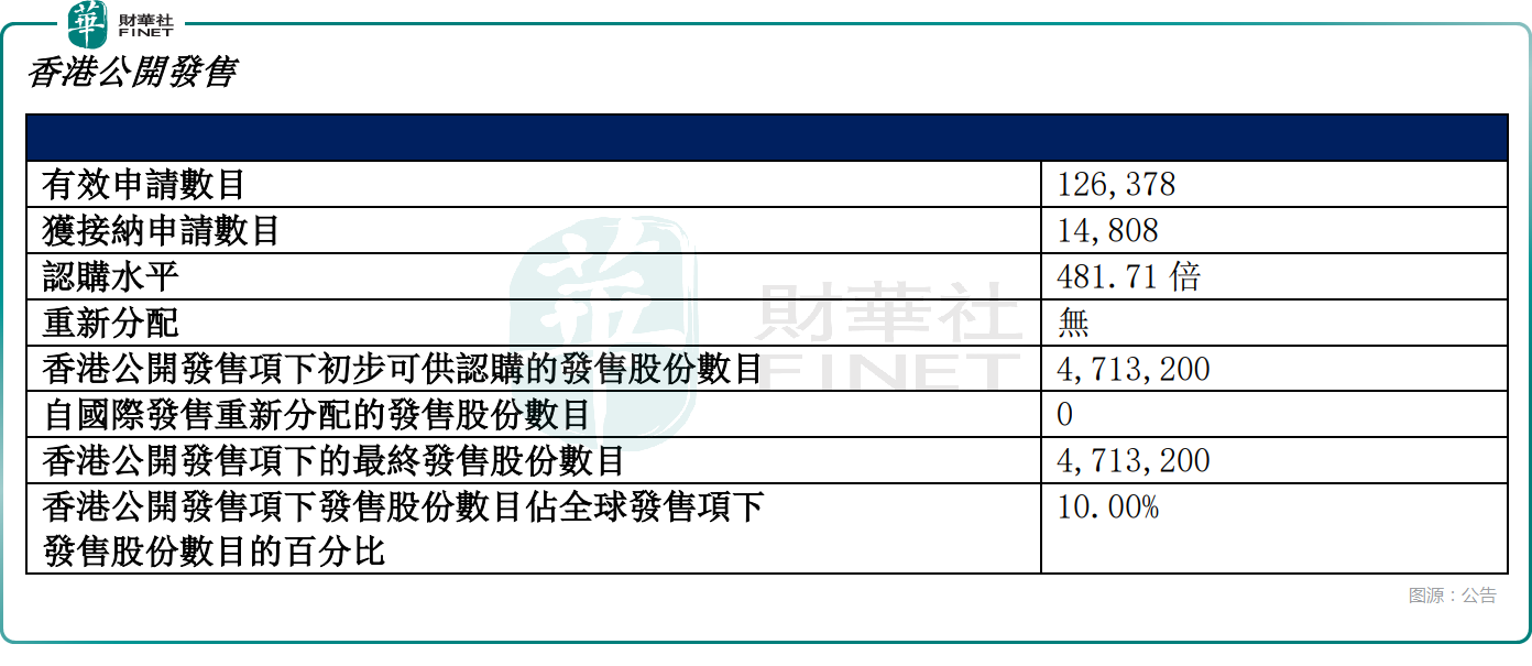 從日前招股階段的表現來看,香港公開發售方面,邁威生物獲481.71倍認購,公開發售的股份最終數目為471.32萬股,占發售股份總數的約10%。合計獲得約12.64萬份有效申請,受理申請數目約1.48萬份,一手中簽率為1.00%。