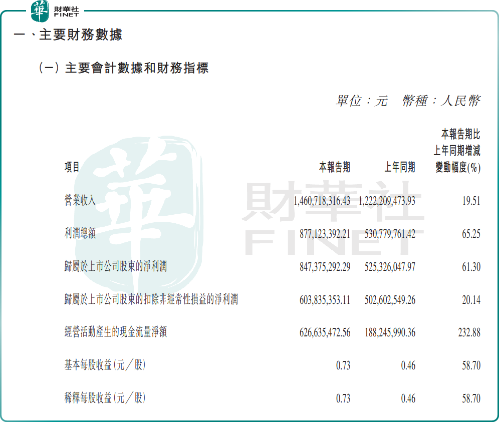 或得益於毛利率較高的產品銷售收入占比增加,一季度公司毛利率達69.8%,較上年同期增加9.3個百分點。主營業務盈利面提升時,現金流同比提升,經營活動產生的現金流量淨額6.27億元,同比增長232.88%。