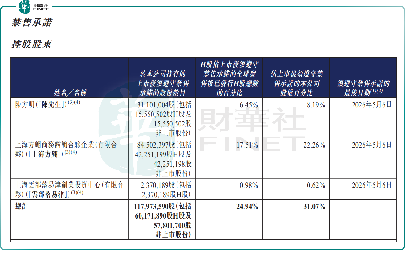據公司公告,根據相關上市規則及指引,博雷頓的控股股東(占已發行股本為31.07%)、主要首次公開發售前投資者(占已發行股本為52.32%)、現有股東(占已發行股本為13.16%)禁售期最後一日為2026年5月6日。
